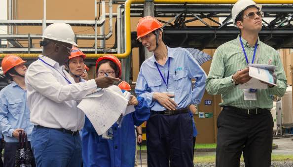 7月5日上午,OPCW視察組和國家代表、省市陪同人員在聽取核查前情況介紹后,共同前往公司生產區(qū)域進行了現(xiàn)場核查。視察組一行在察看企業(yè)總平面布置之后,分別對生產裝置、工藝流程等作了詳細了解,核實了企業(yè)生產經(jīng)營中的相關記錄、原始臺賬、報表等,公司陪同人員客觀、專業(yè)的回答了核查組提出的各類問題。